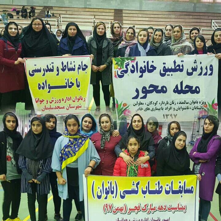 مسابقات طناب کشی آقایان و بانوان مسجدسلیمان گرامیداشت چهلمین سال پیروزی انقلاب اسلامی، صبح روز پنج شنبه مورخ ۹۷/۱۰/۲۷ همزمان در دو سالن ورزشی ایثارگران و بانوان شرکت بهره برداری نفت و گاز این شهرستان برگزار گردید.
