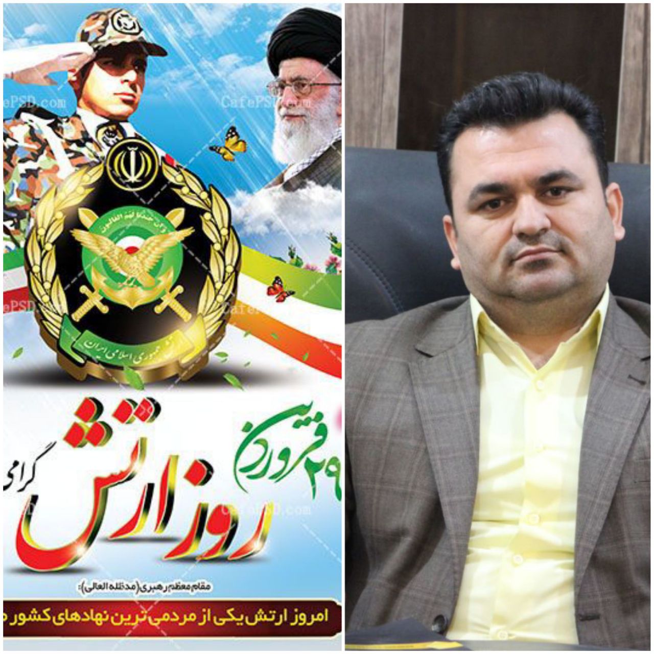 اینجانب ضمن پاسداشت رشادتهای بزرگ مردان ارتش؛ این روز را به آحاد ارتشیان ایران بالاخص نیروهای ارتشی مستقر در شهرستان مسجدسلیمان همچنین برادر ارزشمندم امیر سرتیپ یوسف قربانی فرمانده مقتدر هوانیروز ارتش جمهوری اسلامی تبریک گفته و امیدوارم در سایه الطاف الهی شاهد توفیق بیش از پیش این عزیزان در حفظ دستاوردهای نظام و دفاع از کیان اسلامی باشیم.