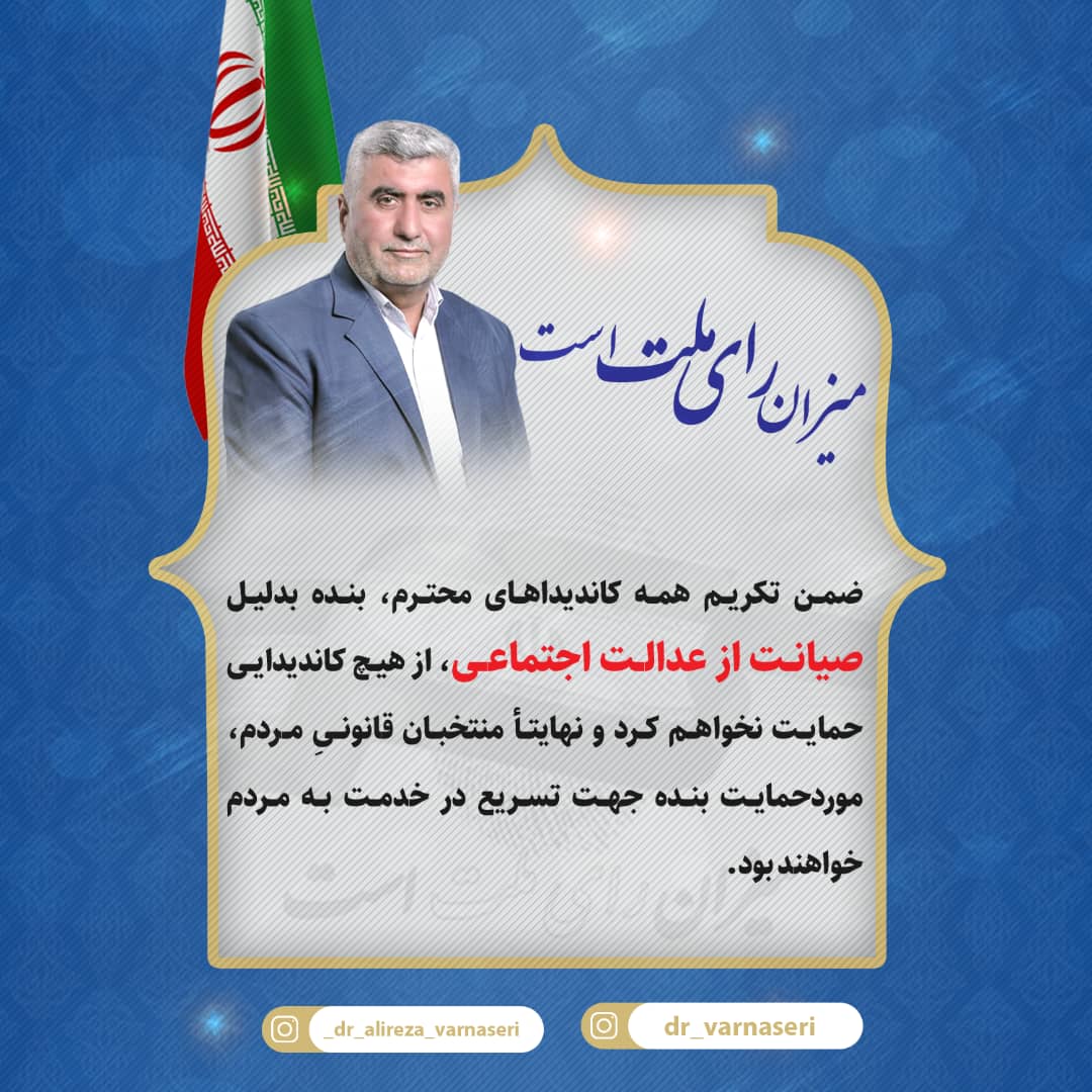 ضمن دعوت از آحاد مردم شریف مسجدسلیمان،لالی هفتکل و اندیکا به شرکت حماسی در انتخابات با درنظر گرفتن مصالح نظام، انقلاب ومشکلات منطقه، *ضمن تکریم همه کاندیداهای محترم، بنده بدلیل صیانت ازعدالت اجتماعی ازهیچ کاندیدایی حمایت نخواهم کرد و نهایتأ منتخبان قانونیِ مردم موردحمایت بنده جهت تسریع در خدمت به مردم خواهند بود.