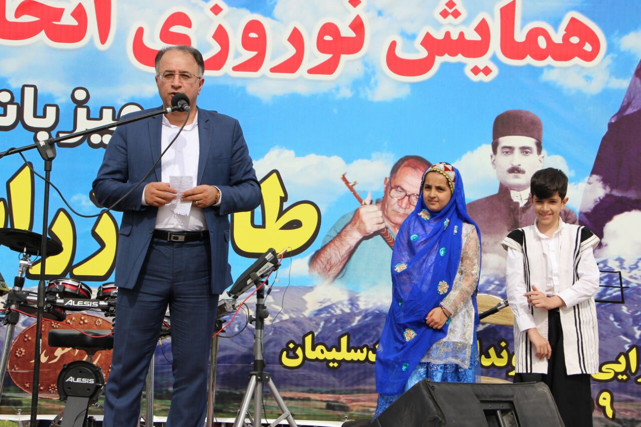 در بخش آغازین این جشنواره دکتر حمید شعبانی عضو شورای شهر و یکی از اعضای هیئت اجرایی خانه زراسوندان مسجدسلیمان ضمن خیر مقدم و خوش آمد به مهمانان، نوروز را طلیعه خورشید و رحمت الهی بر پیکره جهان و دمیدن خونی تازه در کالبد هستی دانست و افزود : در اساطیر ملی و گذشتگان ملی و مذهبی ما همواره به برگزاری مراسمات شادی در مناسبت های مختلف اهتمام ورزیده شده که برگزاری جشن های سده و نوروز در ایران باستان و تجمعات شادی و عبادات در اعیاد اسلامی نمونه هایی از این موارد است و امیدوارم این تجمعات زمینه ساز وحدت، یکدلی و انسجام برادری و استمرار یکپارچگی ملی باشد و این اتحاد و انسجام در تمام لحظات و موقعیت های مختلف حفظ گردد.