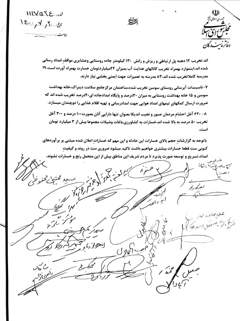 نامه مجمع نمایندگان خوزستان خطاب به رئیس جمهور؛ به داد مردم اندیکا برسید